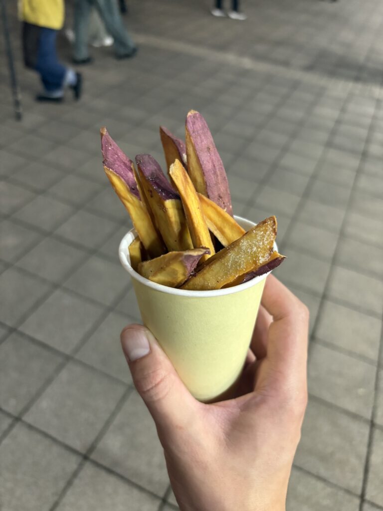 さつまいもをベースにしたお料理が屋台で販売されてて、寒い中大勢のかたが来られていました。旬のさつまいもを使用したポテトフライ、スープなどをいただきました🍠